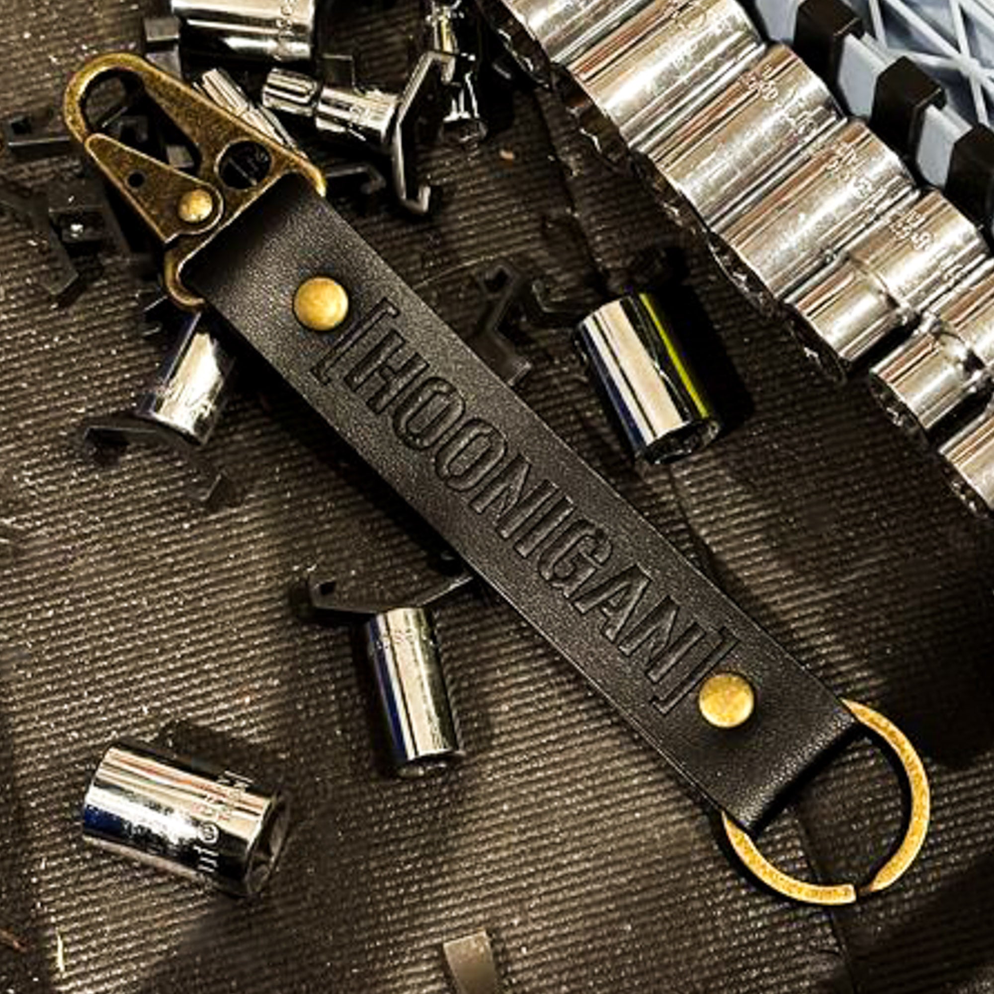 Lets those keys jingle in style, clip em up with the new Hoonigan Leather Keychain!